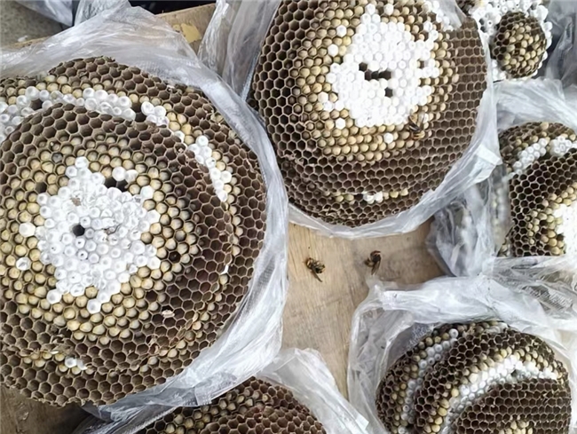 蜂蛹是高蛋白低脂肪的天然食材,在一定程度上能辅助调节免疫、抗氧化。食客要想购买到新鲜的蜂蛹,必得赶个早市,找到背着背篓卖蜂巢的乡人,又或者找到熟人提前联系预订,不然可能就不能如愿品尝到油炸蜂蛹的美味。仔细观察会发现,每个蜂巢都像精心雕琢的艺术品,六边形的巢房里,白玉般的蜂蛹安然沉睡。挑选蜂巢是门学问,优先选购那些巢房饱满、色泽温润的,这种成熟的蜂蛹油炸后一口咬下才更显酥脆。
